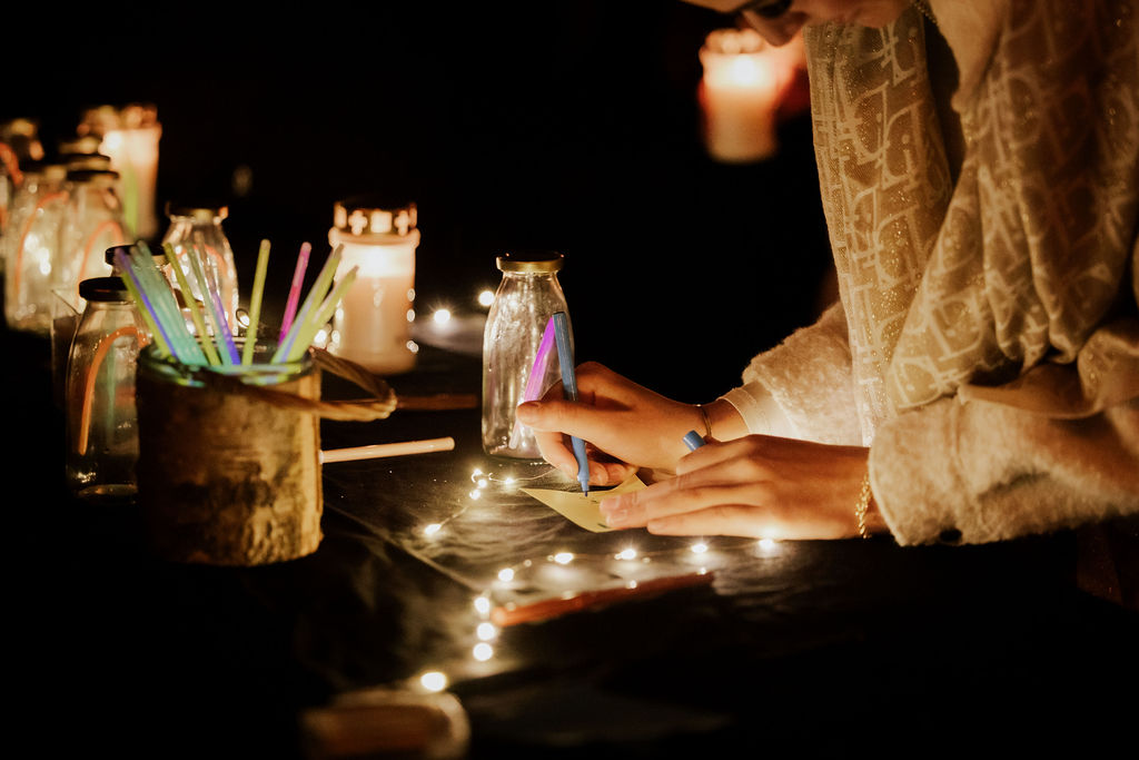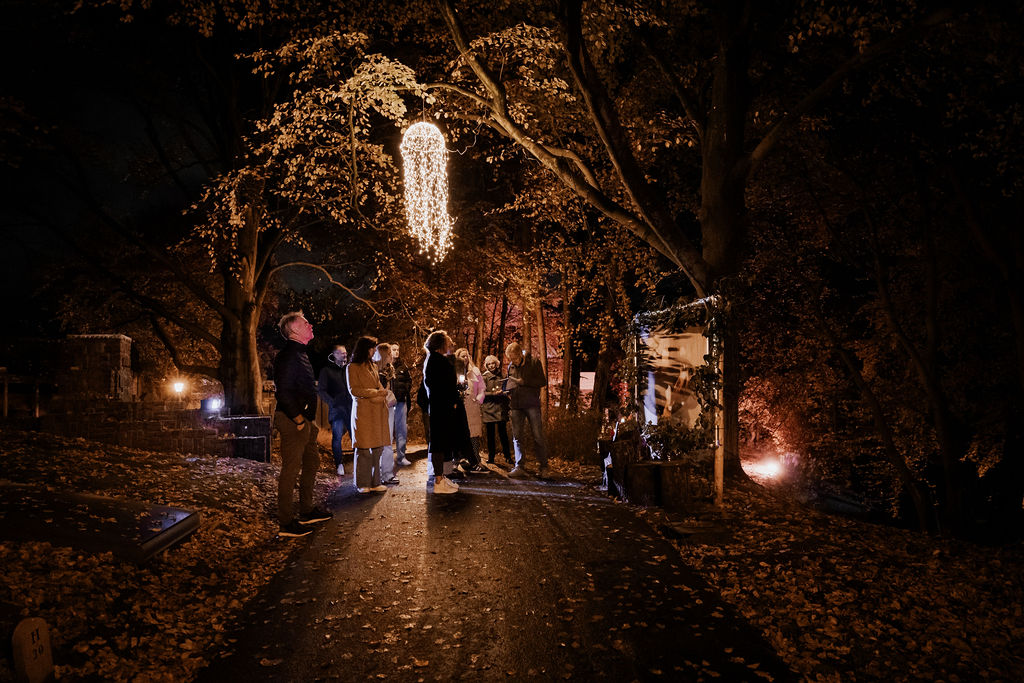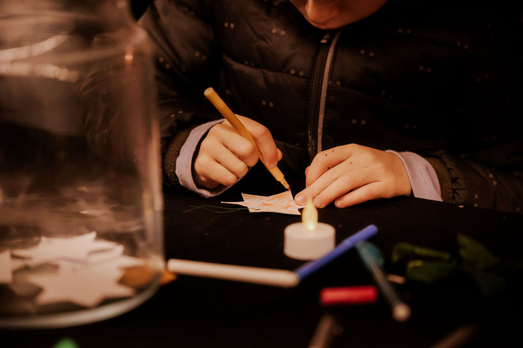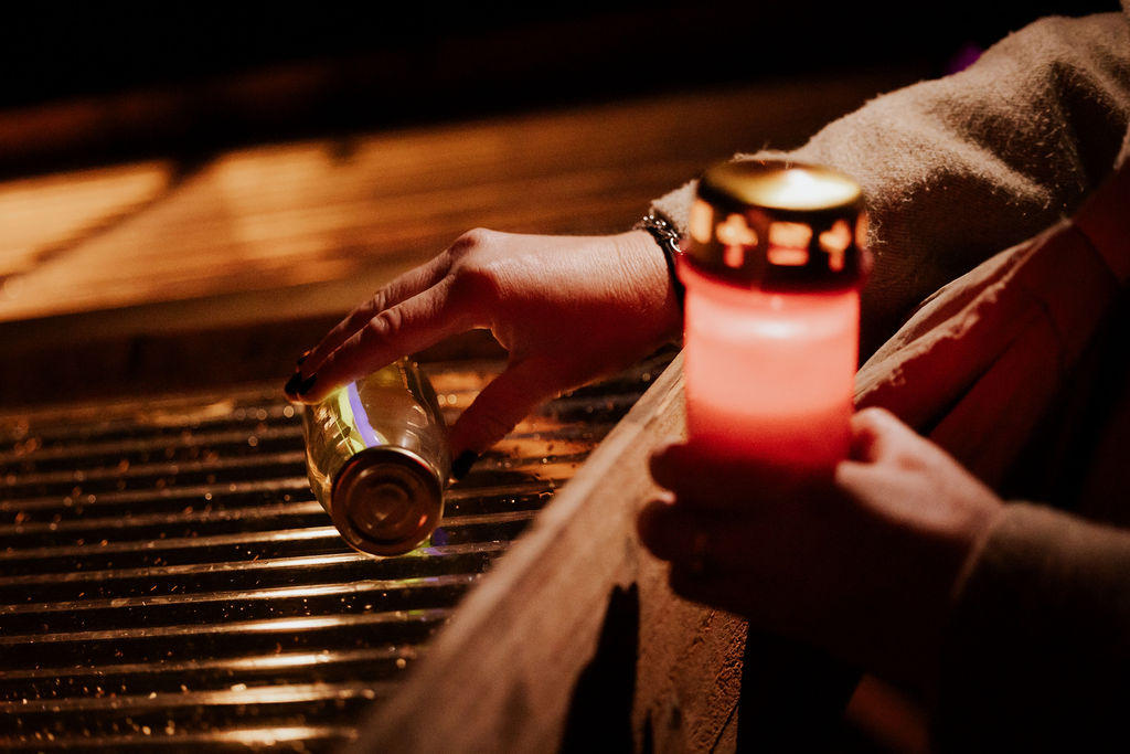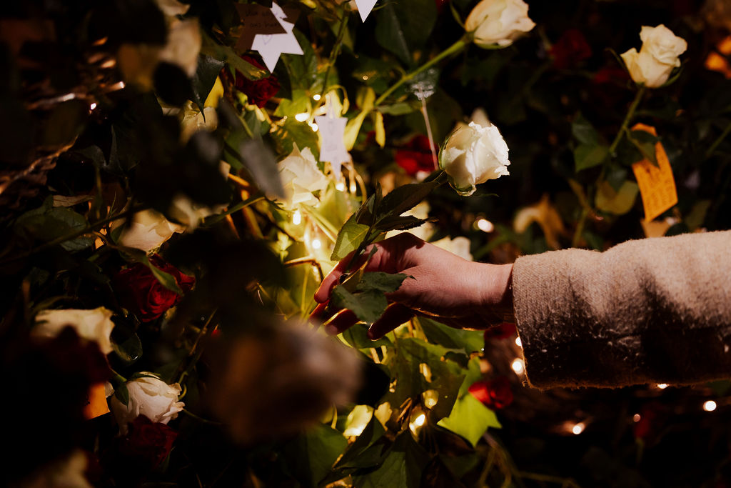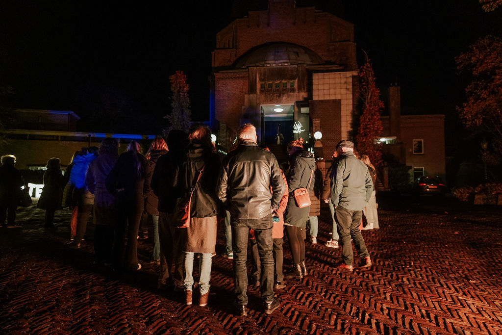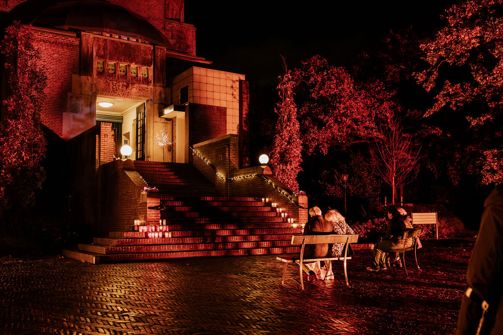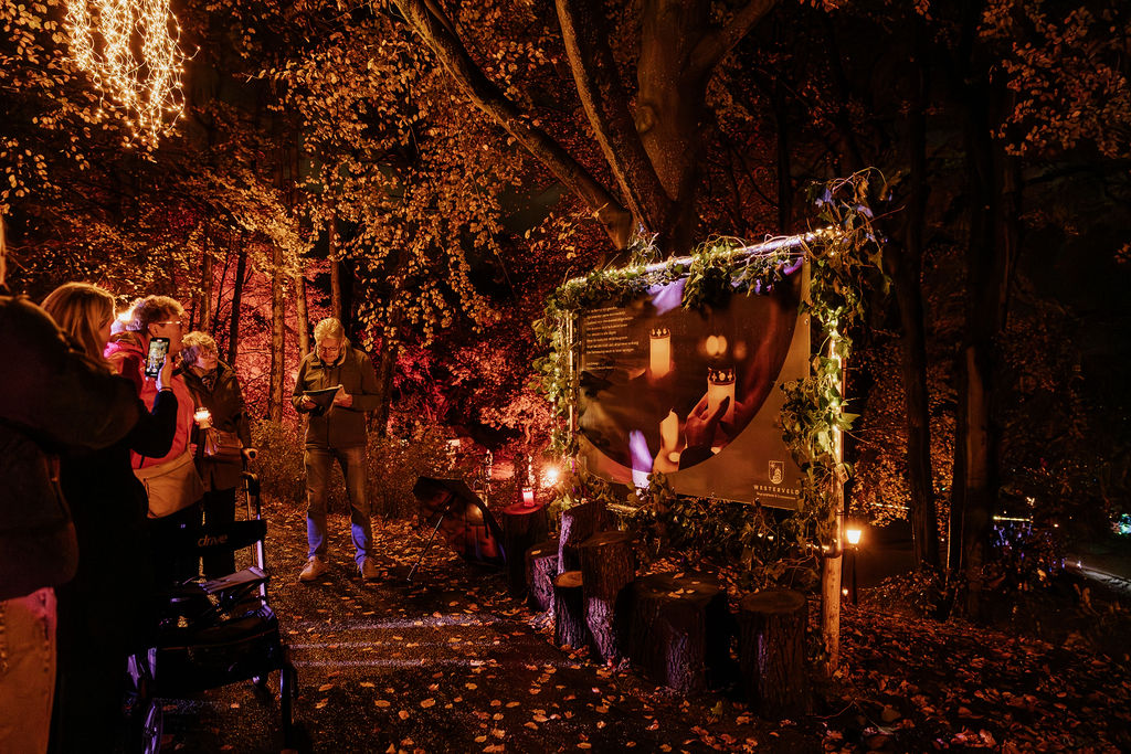 Zodra de avond viel, veranderde het park in een zee van kaarsjes en fakkels. Bezoekers ontvingen bij aankomst een kaarsje en volgden een sfeervolle route langs bijzondere plekken van bezinning. Onderweg was er live muziek, poëzie en ruimte voor kleine rituelen, zoals het schrijven van een persoonlijke boodschap voor de flessenpost of het achterlaten van een roos bij de rozenwand.